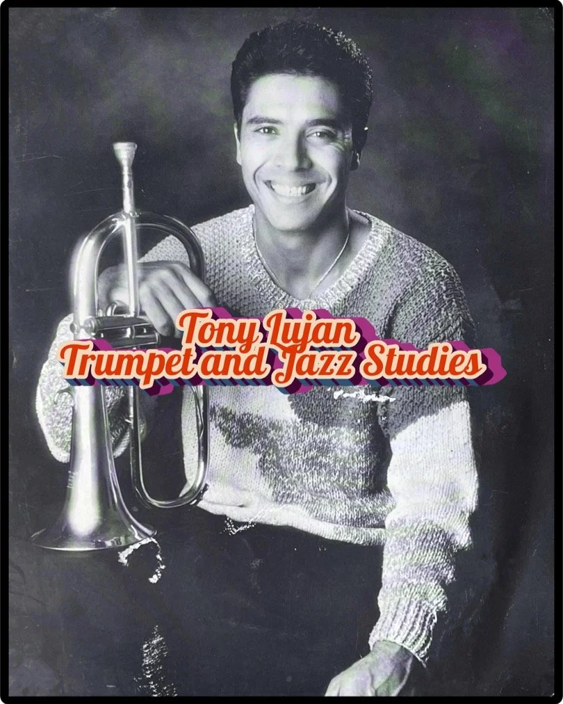 Tony began playing trumpet at the age of ten. He studied privately with local (NM) professionals and was voted into the All State and Albuquerque Youth Symphony. After attending a music clinic that featured jazz trumpet legend Clark Terry, Tony decided on jazz. Terry took Lujan under his wing and helped him develop a work ethic that made Tony a world class artist. Tony went on to study privately with Woody Shaw, Cat Anderson, Freddie Hubbard, Bobby Shew, and Carl Saunders.